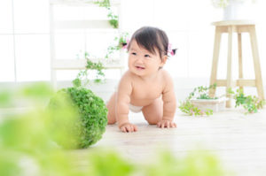 1才バースデーフォト!はだかんぼスタイルで(三郷市のお客様)