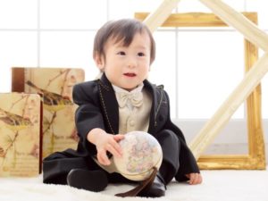 1才バースデーは黒のスーツでキリッと♪(草加市のお客様)