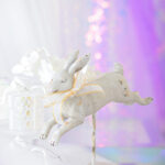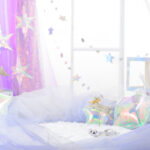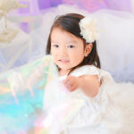 オーロラバルーンなど、キラキラした小物をいっぱい集めてドリーミーなフォトブースを作りました。まるで雲の上のような”夢かわ”な空間で今だけの記念写真を撮影します。