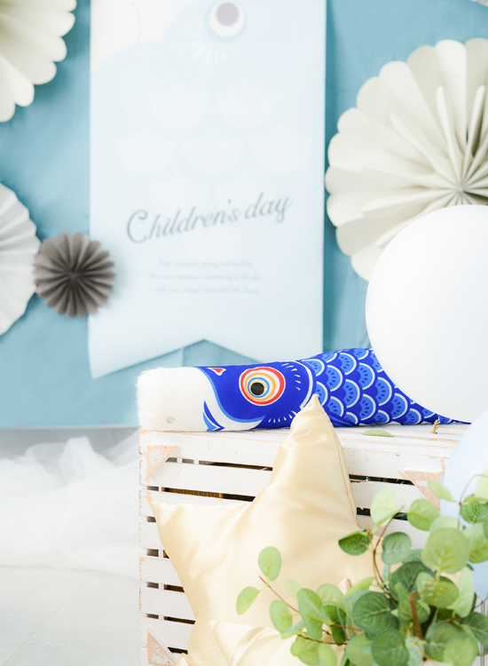 こいのぼりや兜などのアイテムで爽やかなフォトブースをコーディネートしました。