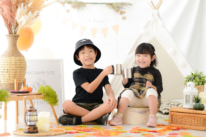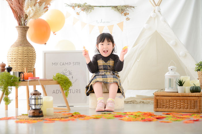 お利口さんで撮影時間があまればご自身のスマホで自由に撮影できます!スタジオ内で撮影ができるのは『秋満開キャンプ撮影会』だけ!ママやパパもカメラマン気分で撮影を楽しんでくださいね!