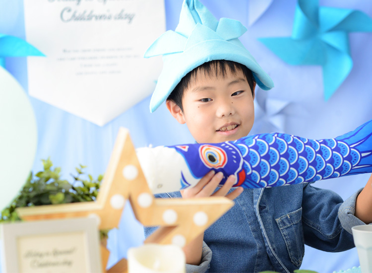 こいのぼりや兜など、こどもの日ならではのアイテムをコーディネートしました。もちろん女の子も大歓迎です!